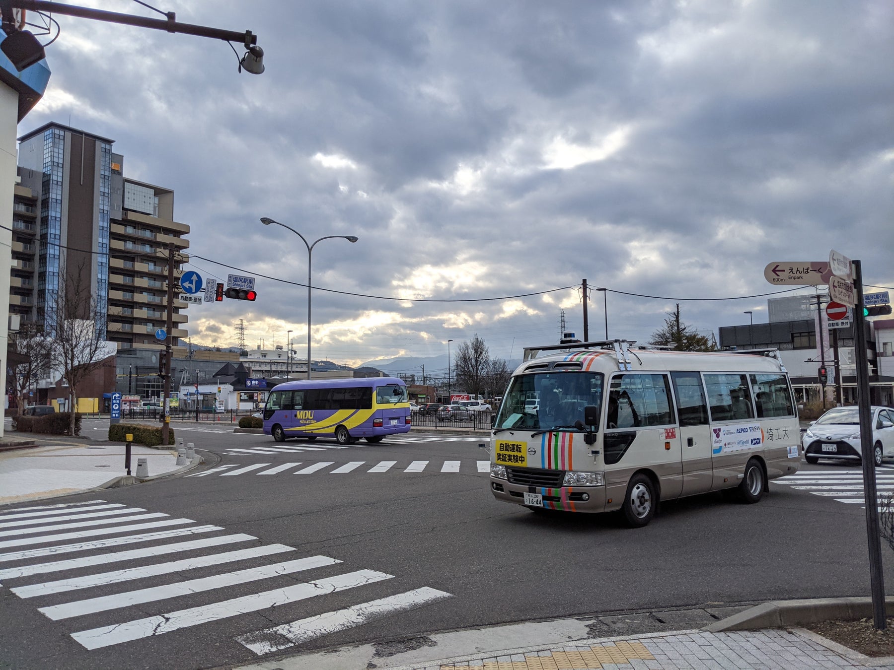 (2)塩尻市内の一般公道におけるバス型自動運転車両を用いた走行実証実験(令和2年11月)