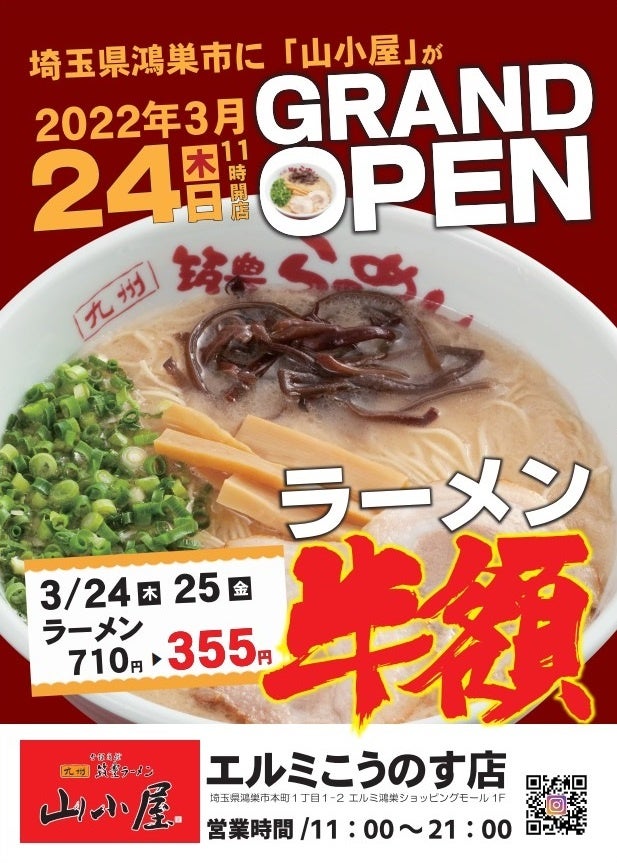 埼玉県鴻巣市に初出店! 『九州筑豊ラーメン山小屋 エルミこうのす店』グランドオープン