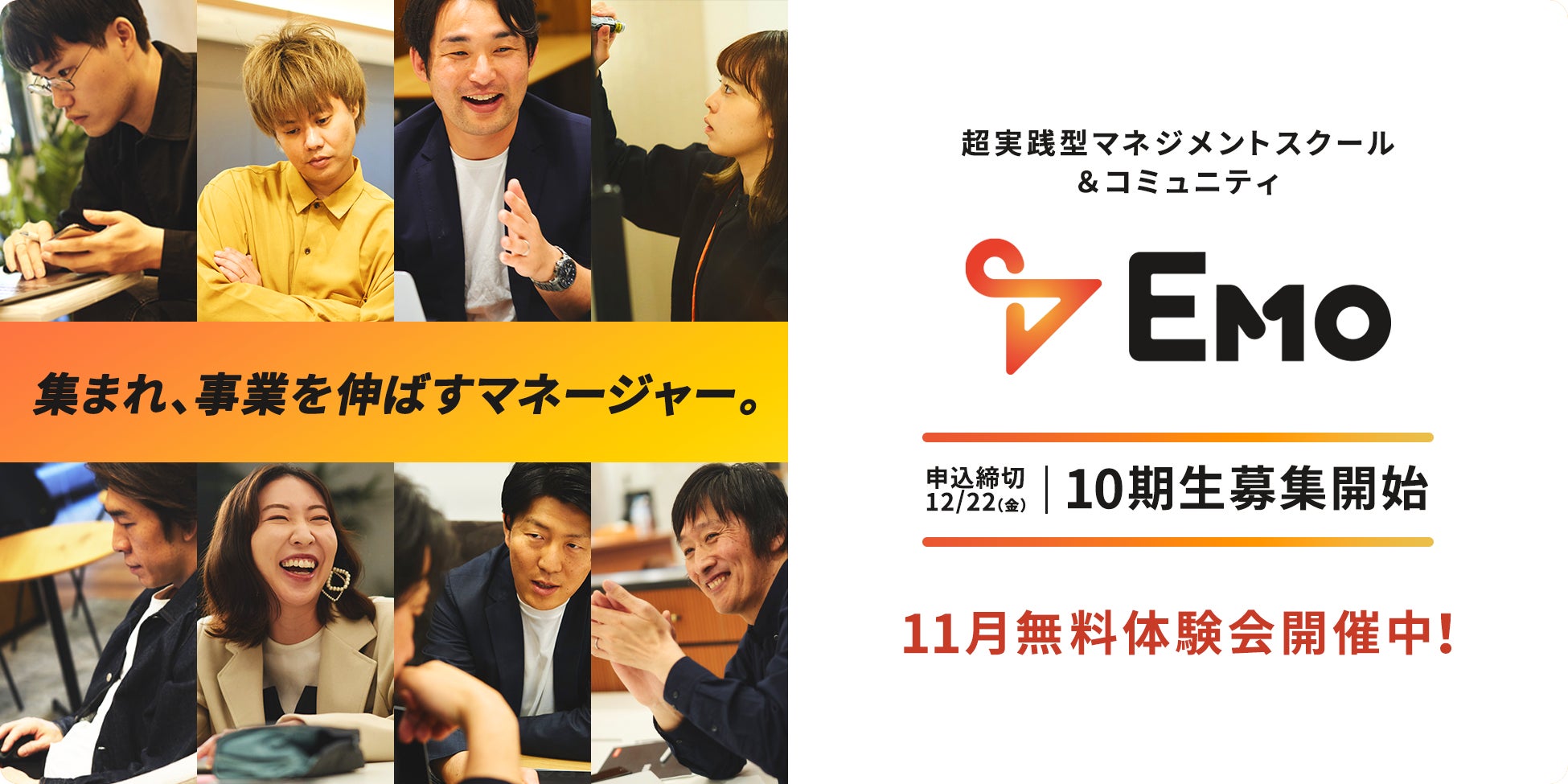 受講累計約180名を突破!マネージャーの成長を伴走支援実践型マネジメントスクール&コミュニティ「Emo」第10期 募集を開始