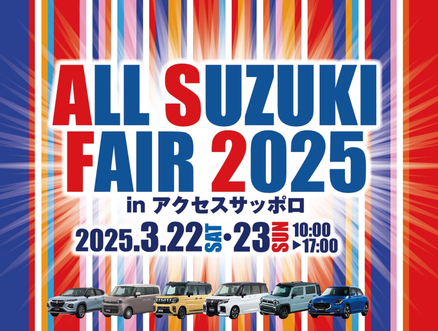 アクセスサッポロにてスズキの新車・中古車を体感できるオールスズキフェア2025が開催されます。