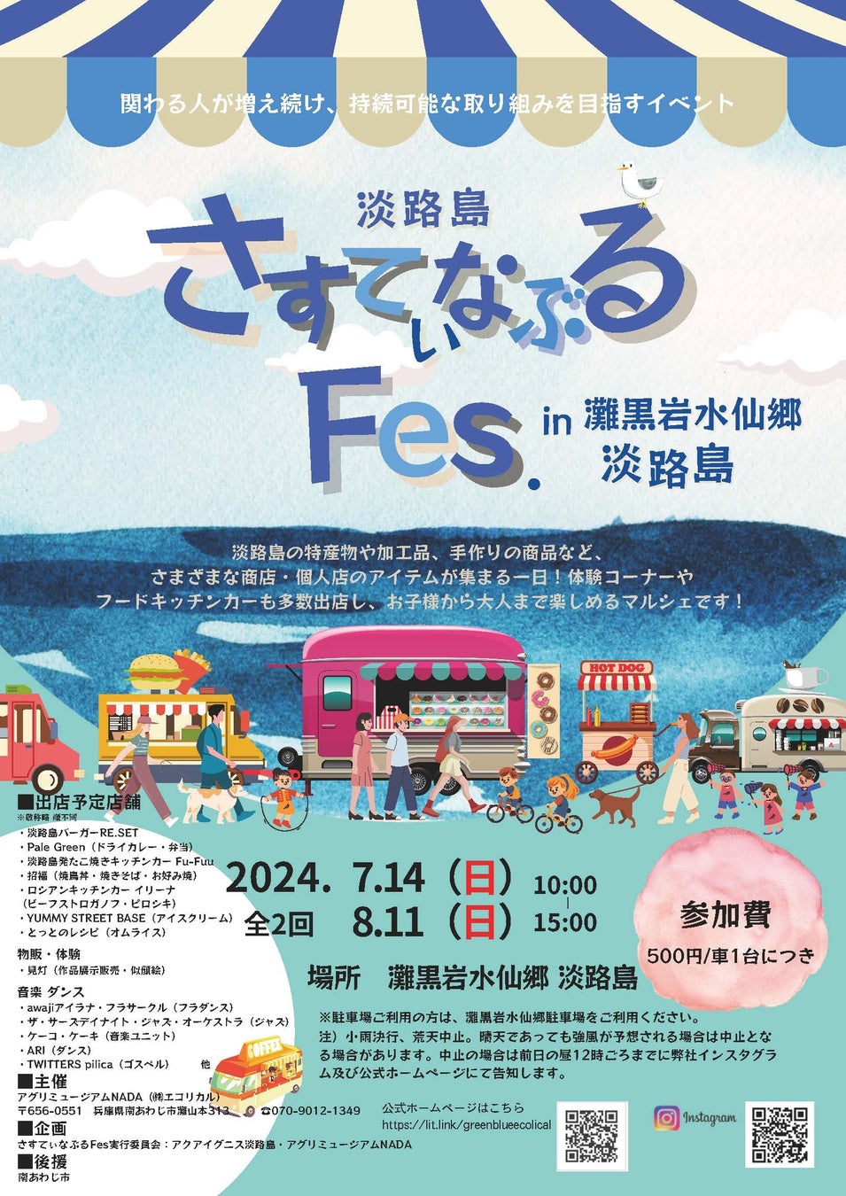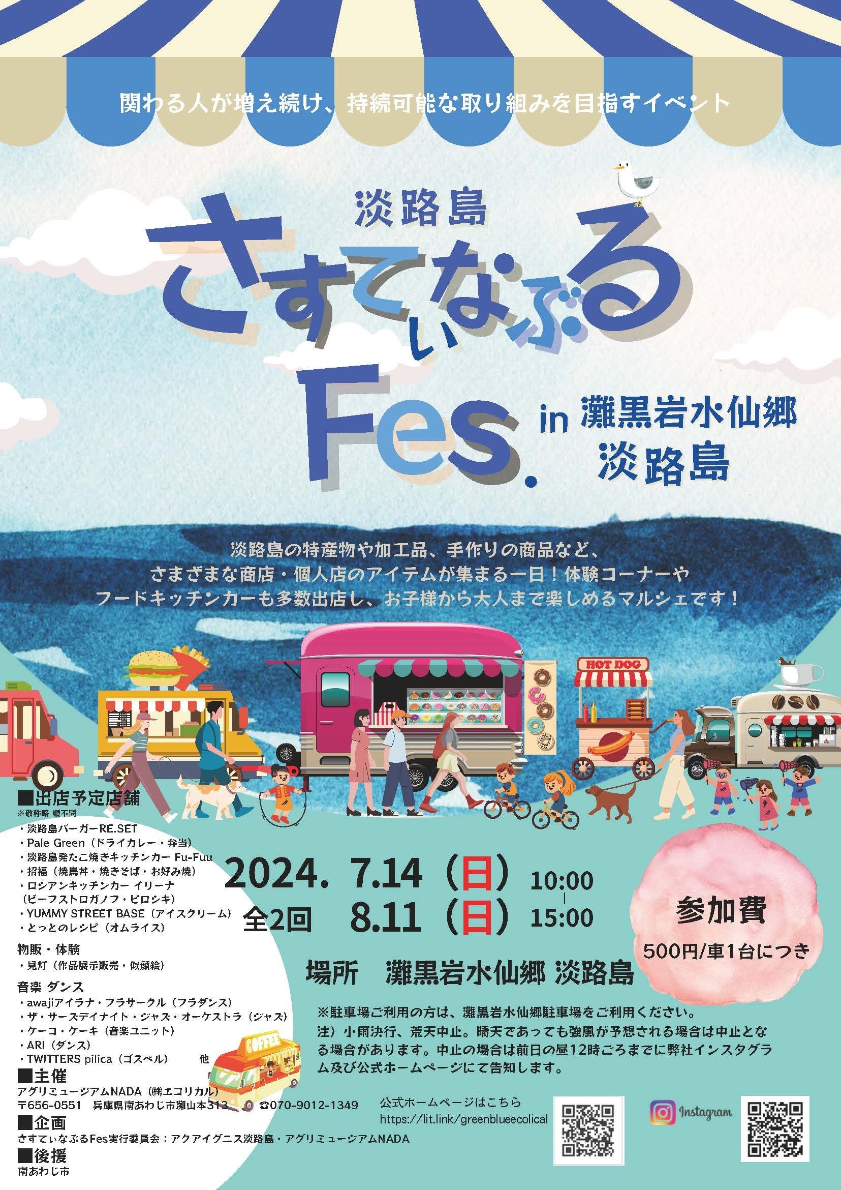 株式会社アクアイグニス(本社:東京都中央区、代表取締役:立花哲也)が運営する、兵庫県淡路市のアクアイグニス淡路島が主催した「さすてぃなぶるFes.」が、このたび南あわじ市でも開催されることになりました。