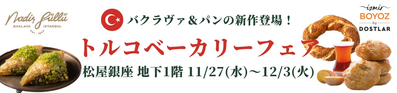 「パンの消費量世界一」*といわれているペイストリー大国のトルコより、日本では未だ珍しいトルコのペイストリーを紹介する「トルコベーカリーフェア」を2024/11/27(水)~12/3(火)の期間限定で、東京・松屋銀座 地下一階 GINZAスイートで開催します。