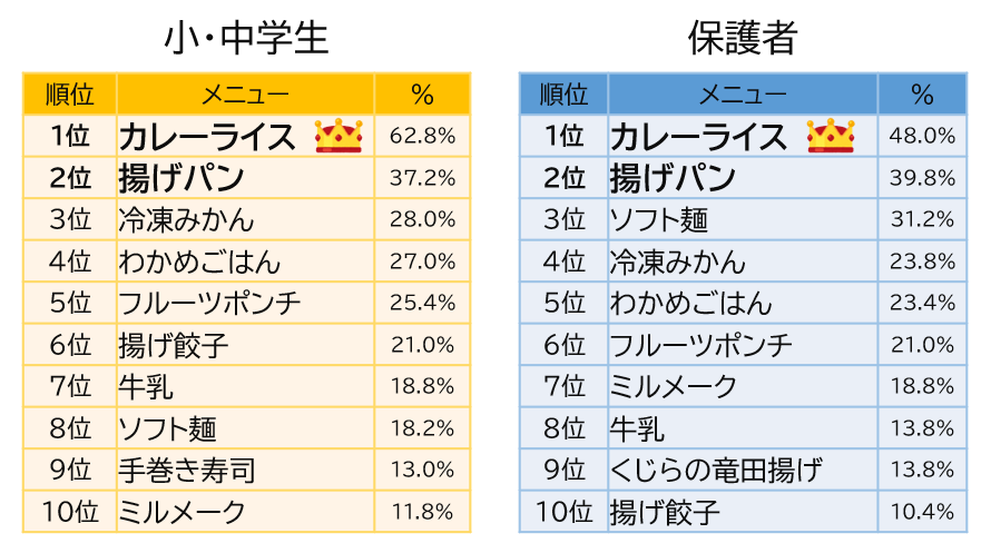 好きなメニューは子どもも保護者も「カレー」「揚げパン」