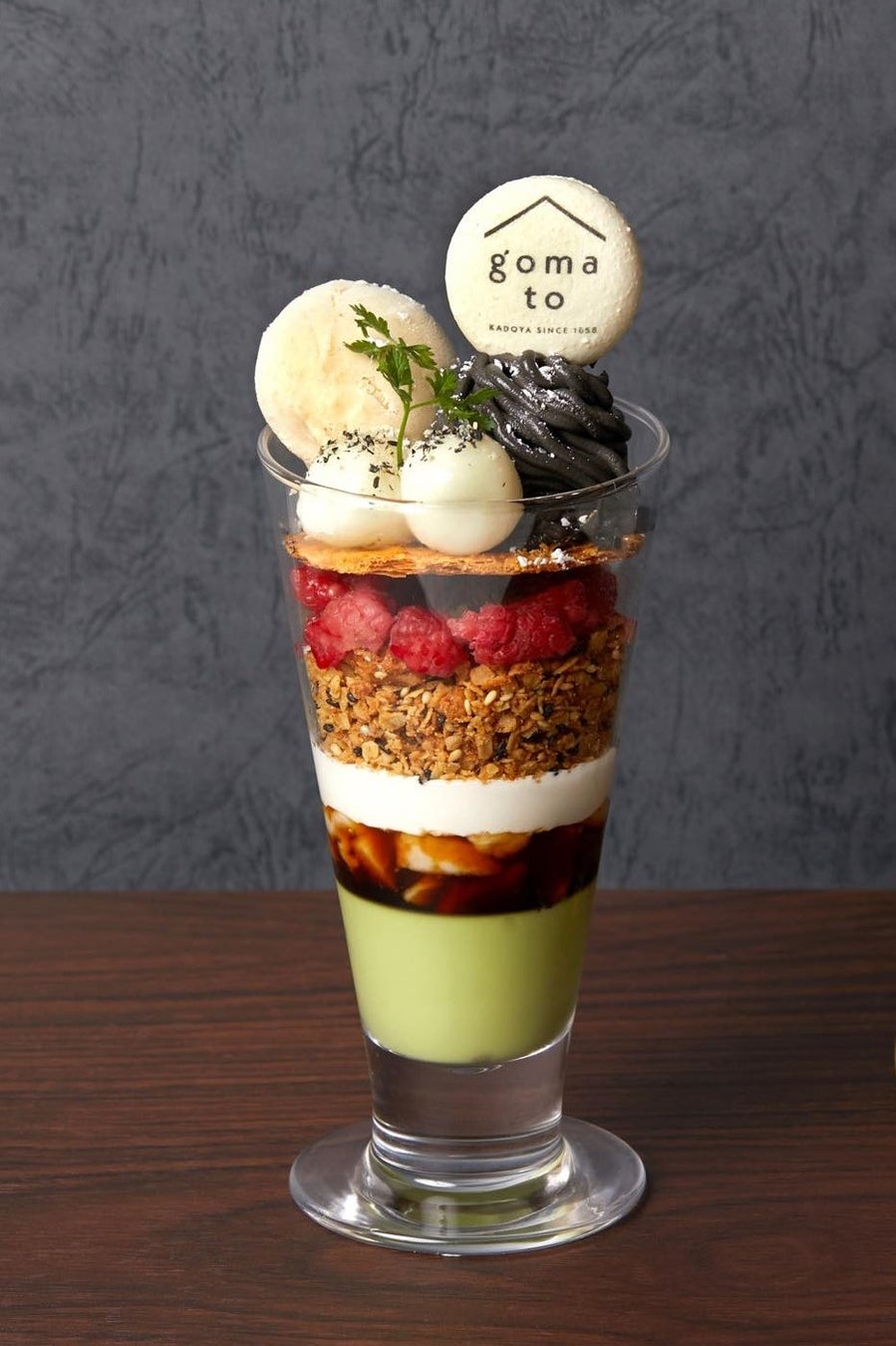 オープン1周年記念メニュー!goma to1周年アニバーサリーパフェ“黒ごまモンブランパフェ”と“黒ねりごまと自家製わらび餅のバニラシェイク”提供開始!