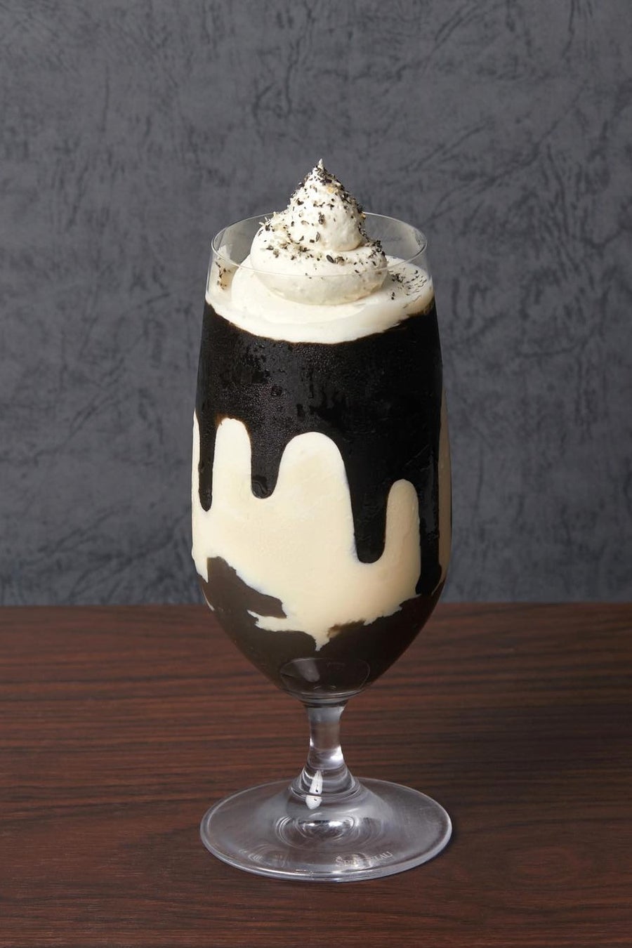 口の中でとろけるやわらかさの自家製黒ごまわらび餅を加え、もちとろ食感もお楽しみいただける一杯です。