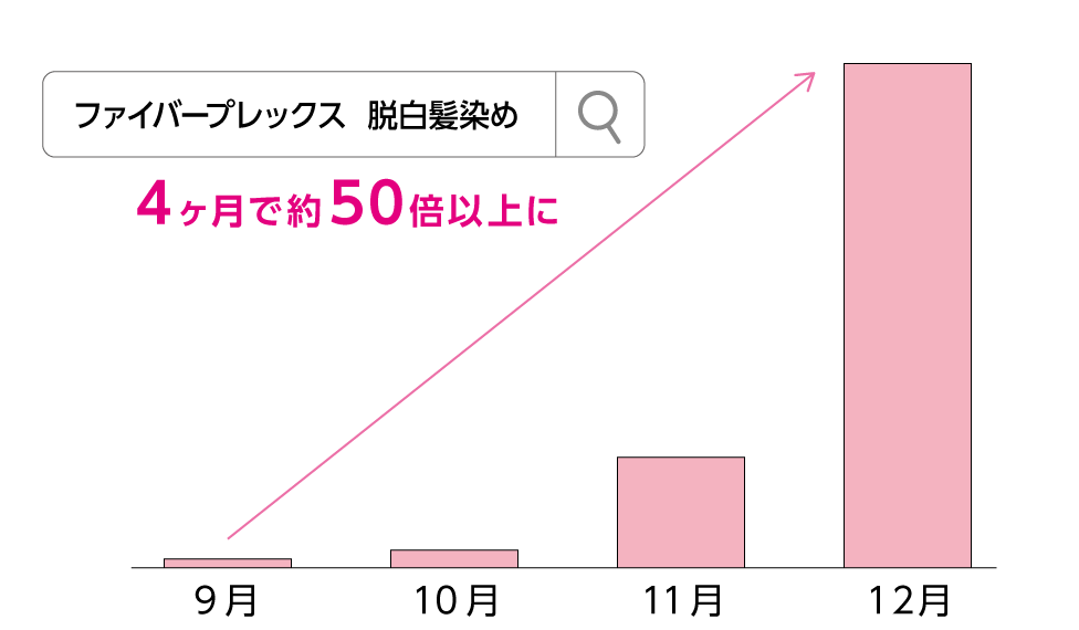 「 ファイバープレックス 脱白髪染め」の大手サロン検索メディアでの検索数が2021年9月から2021年12月の間で50倍以上も増加。一気にトレンドワードに。