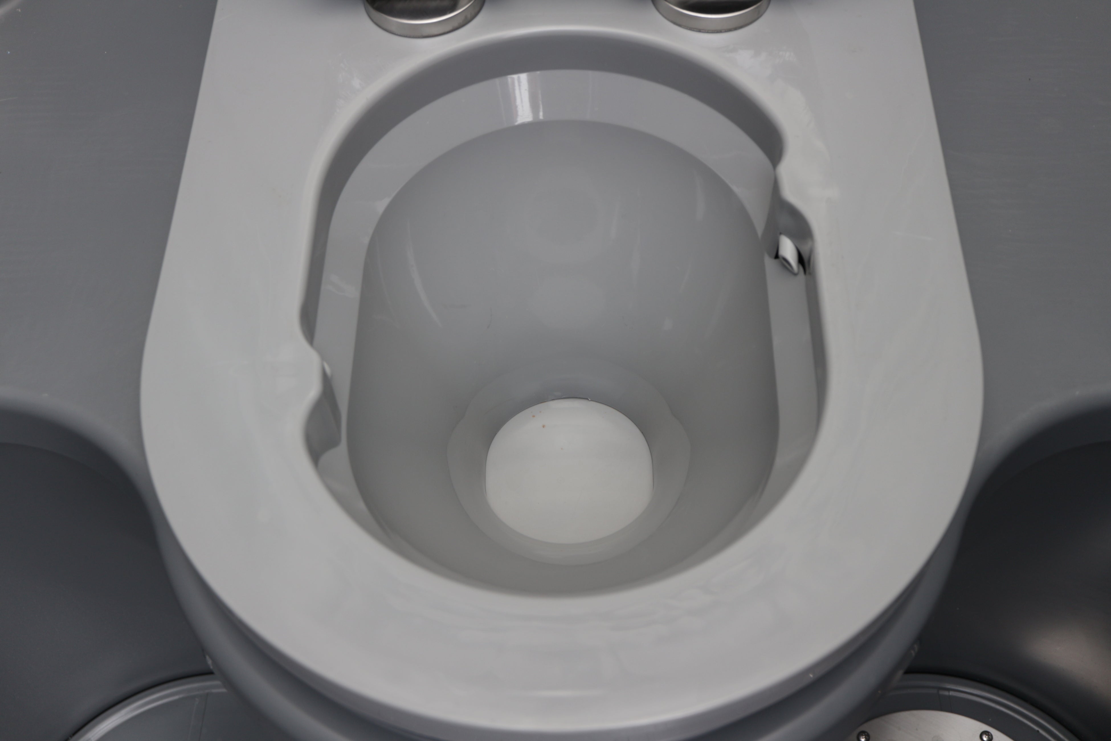 一般的な強化プラスティック素材の仮設トイレは、PE・リサイクルHDPE・ヴァージン100%HDPEのいずれかの素材が多いのですが、当製品は長期間のご使用でも劣化の少ないヴァージン素材を採用いたしました。移動や設置を考慮した軽量モデルながら、便器を含むほとんどのパーツに高密度ヴァージンHDPE素材を使用しています。リサイクルHDPE混合素材の従来品に比べ、強度と耐久性の向上、汚れや臭いの付着防止にも貢献しています。