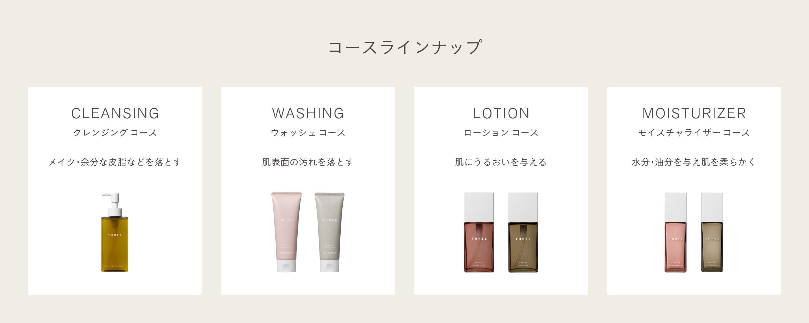 心・からだ・肌にホリスティックにアプローチするTHREE。ベーシックなスキンケアをフレキシブルに体感でき、肌状態やライフスタイルの変化に寄りそう4つの定期購入コースがスタートします。