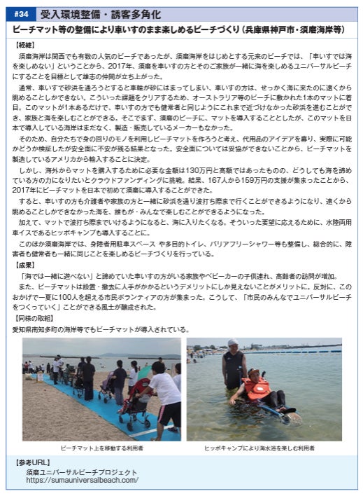 1/2全国制覇をしたユニバーサルビーチが2年連続(3度目)観光庁事例に掲載。海のバリアフリー化で、ブルーフラッグ認証、ユニバーサルツーリズム、持続可能な観光を促進。