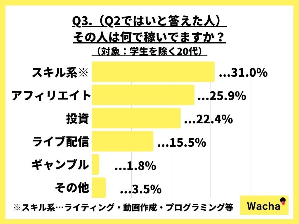 ▼画像:Q3.(Q2で「はい」と答えた人)その人は何で稼いでますか?
