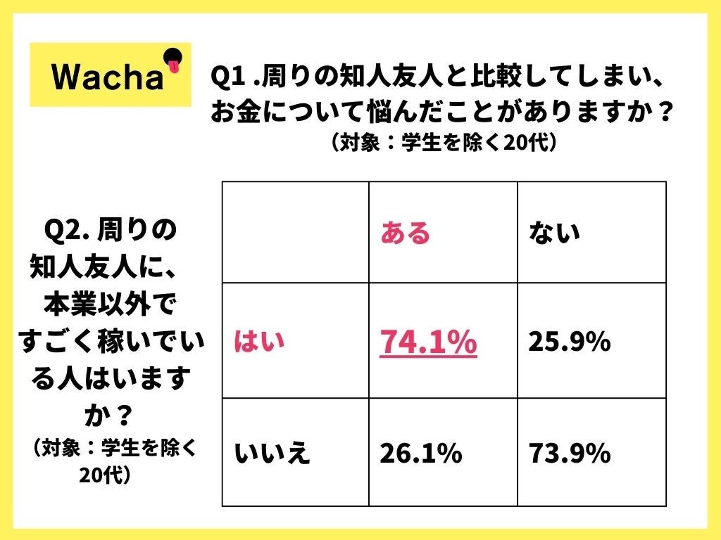【Wacha調査レポート】働く20代が持つお金の悩みの要因は「周りとの収入格差」