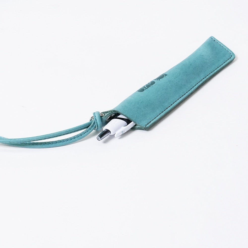 幸運の神様として知られるビリケンさんを御守りのように持ち歩けるペンケース。革紐はスライドで長さ調節が可能。普段使いからとっさの書き物などにも便利なアイテムです。