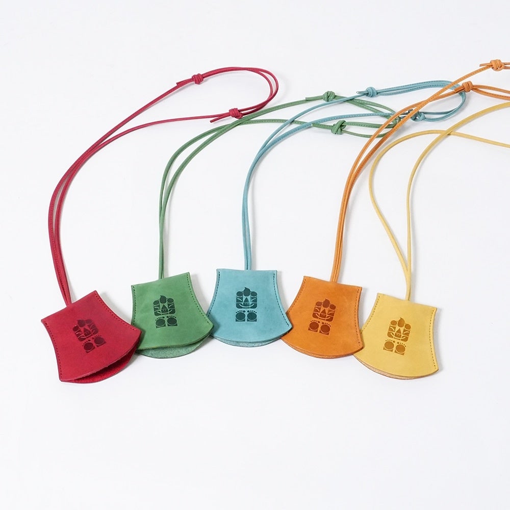 首から下げて御守りのように持ち歩けるクロシェット。中にリングがあり大切なおうちの鍵をお守りします。革紐はスライドで長さ調節が可能です。ファッション感覚でチャームとしても可愛く目を引くワンポイントのアイテムです。