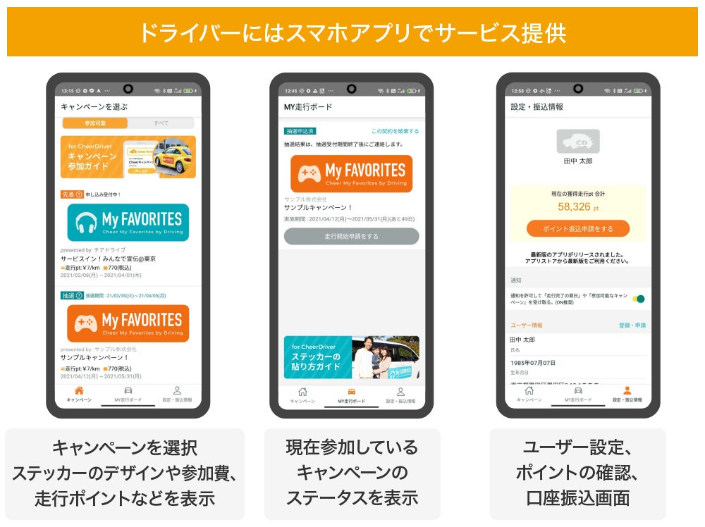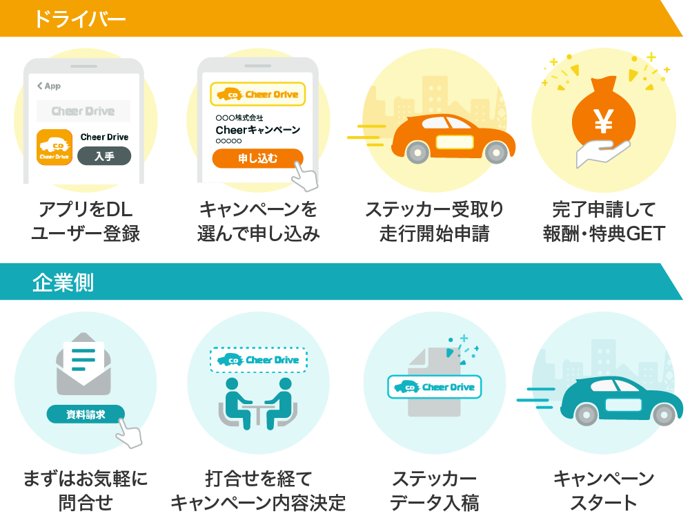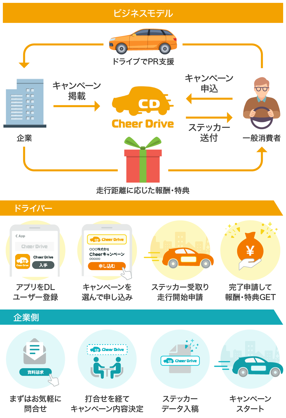 ・事業内容:一般ドライバーと企業の相互応援サービス「Cheer Drive」の運営