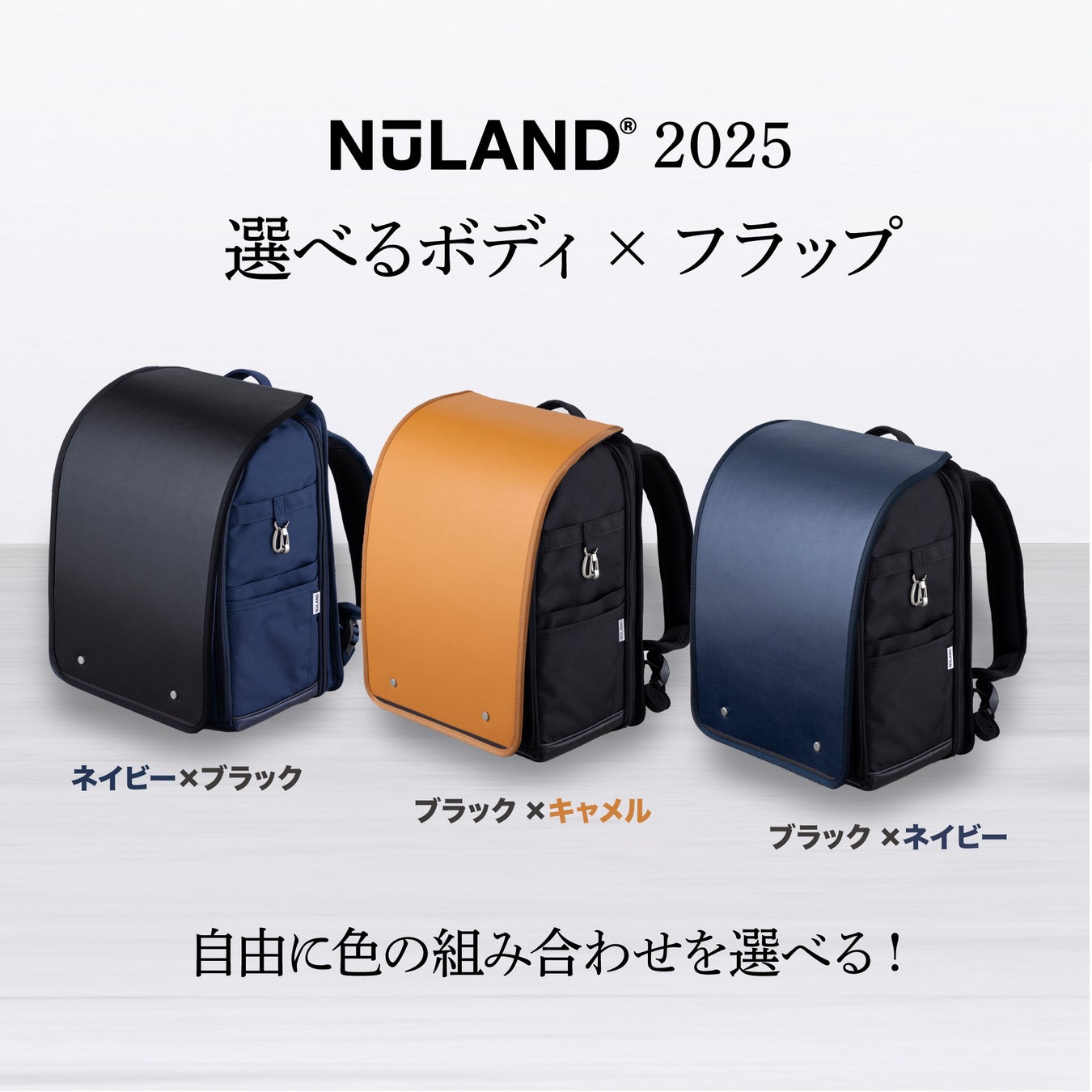 環境にも身体にも優しい新時代のランドセルとして誕生したNuLAND®<ニューランド>。2025年は本革のような美しさを持つ新素材を新たにフラップに採用。機能性や軽さはそのままにさらにデザイン性も追及。