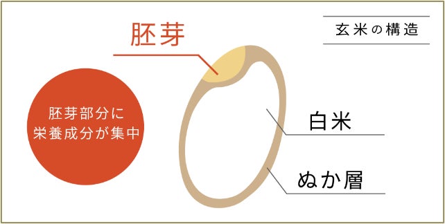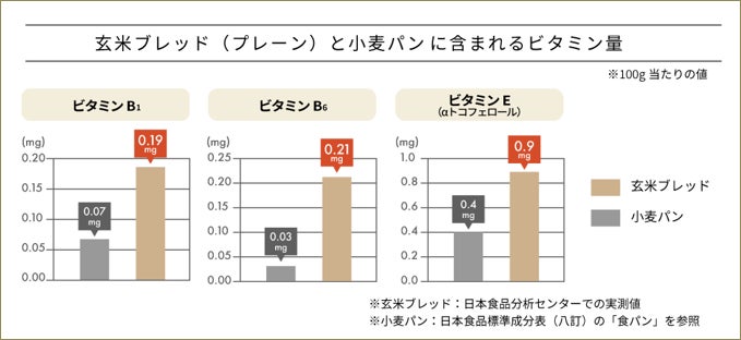 栄養成分が集中する胚芽部分も含めて丸ごと使用し、高い栄養価を実現。小麦パンと比較して、ビタミンB1、B6、Eの含有量が多く、GABAも含まれています。