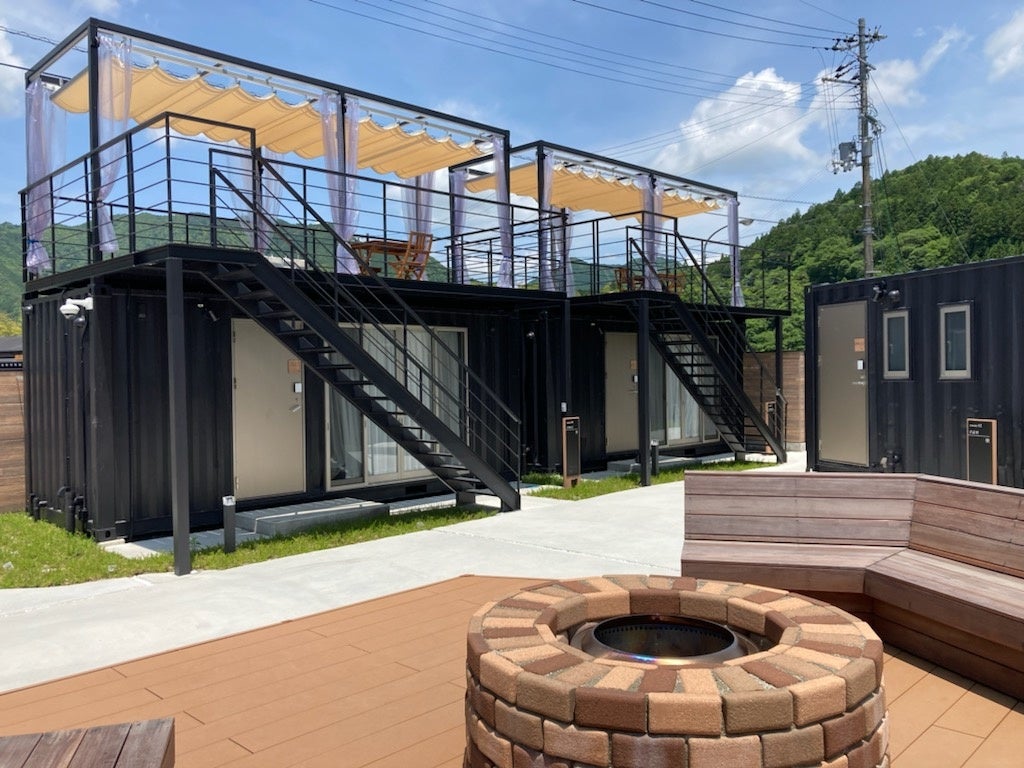 続く第2弾として、古くから熊野詣の宿場町としてにぎわった中辺路町近露に、「SEN.RETREAT CHIKATSUYU」を2022年4月28日、開業しました。山中で大自然に囲まれたTAKAHARAとは対照的に、CHIKATSUYUは「遊び心満載の、ちょっとルーズで心ゆるまる宿」。バーベキューができるプライベートガーデンや、焚き火を囲めるテラス、宿泊客自身で生地からこねて焼けるピザ窯などを備えています。非日常にワクワクしたり、気の置けない仲間や家族とゆったり過ごしてホッとしたり、リラックスできる空間となっています。また、コンテナ1棟を1つの客室としているため、外から直接部屋に出入りでき、密を避けられます。