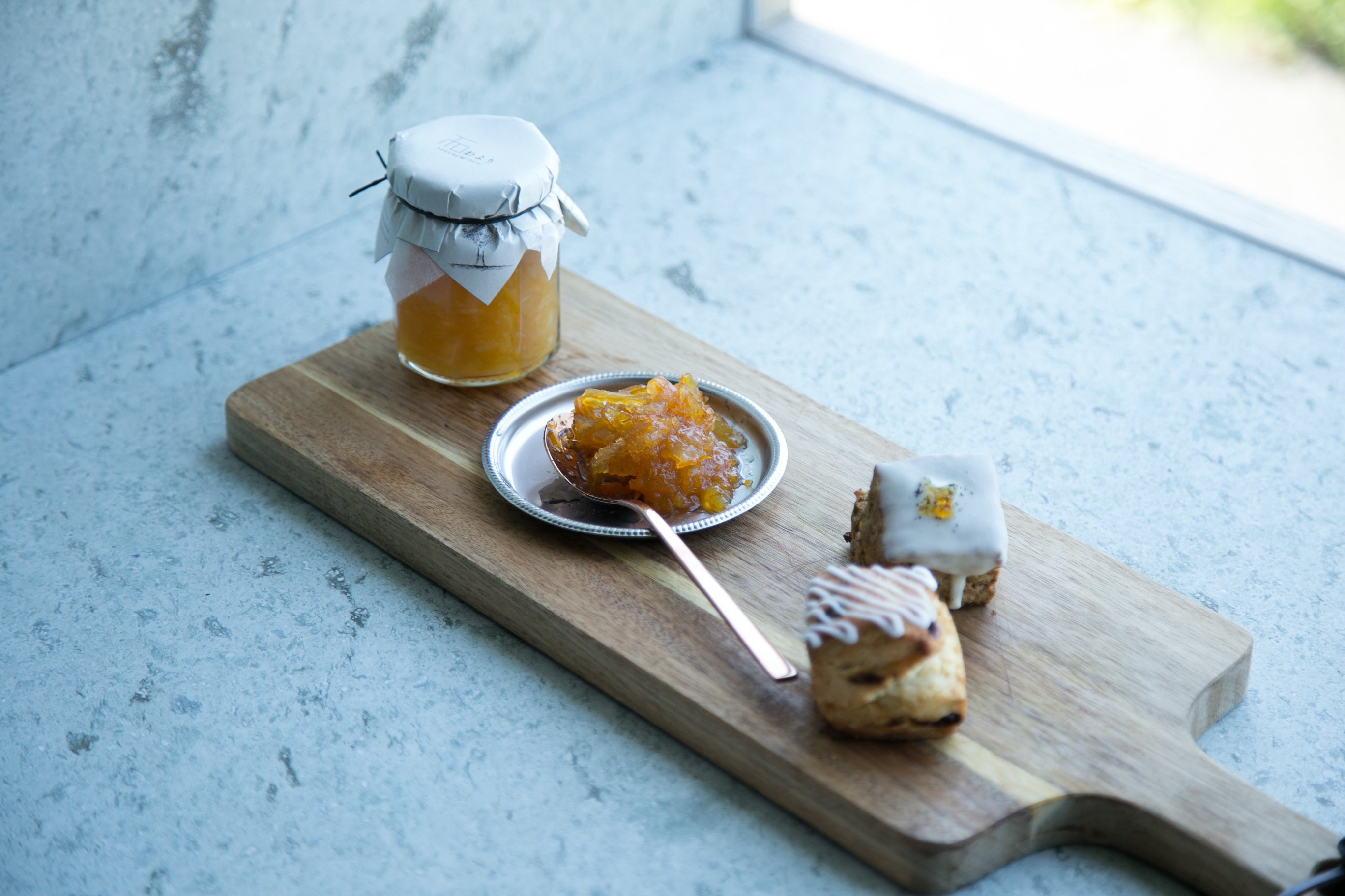 本ツアーでは、ジュースをつくる際に廃棄する果物の皮を使用するなど、サステナブルを意識したデザート2種のほか、朝食用のパン、果物やハーブとジュレを炭酸水と混ぜてつくるオリジナルのデトックスウォーターをご提供します。
