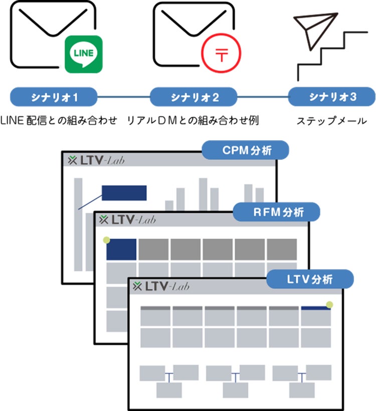 この連携により、「LOGILESS」を利用されている事業者様は、「LTV-Lab」を併せて利用する事で、自社の顧客属性・特性を見える化し、顧客セグメントに合わせた最適なステップメールを配信することで、ネットショップへのリピート率アップを実現できます。