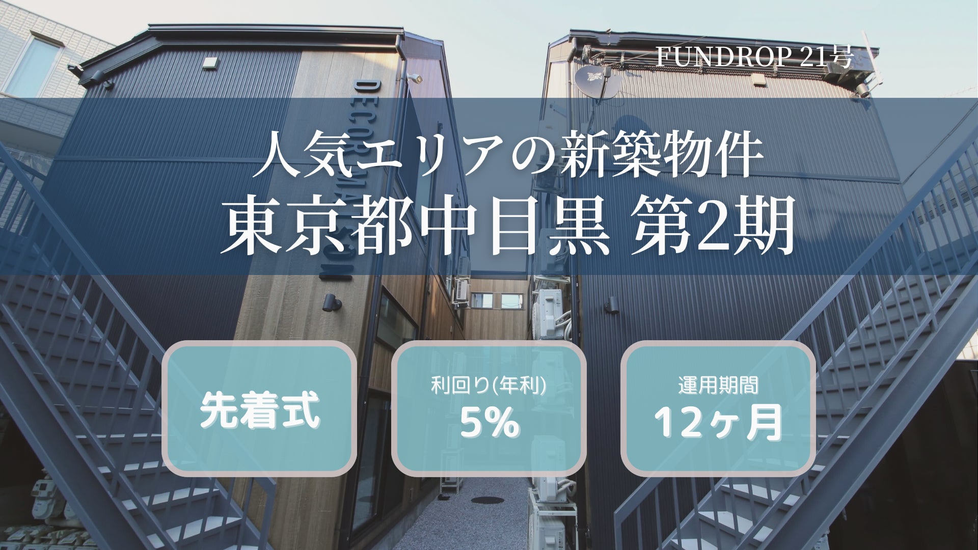本ファンドは、東京都目黒区中目黒に所在する、令和5年4月新築の借地権付1棟レジデンスアパート第2期(以下「本物件」といいます。)の運用を行いました。