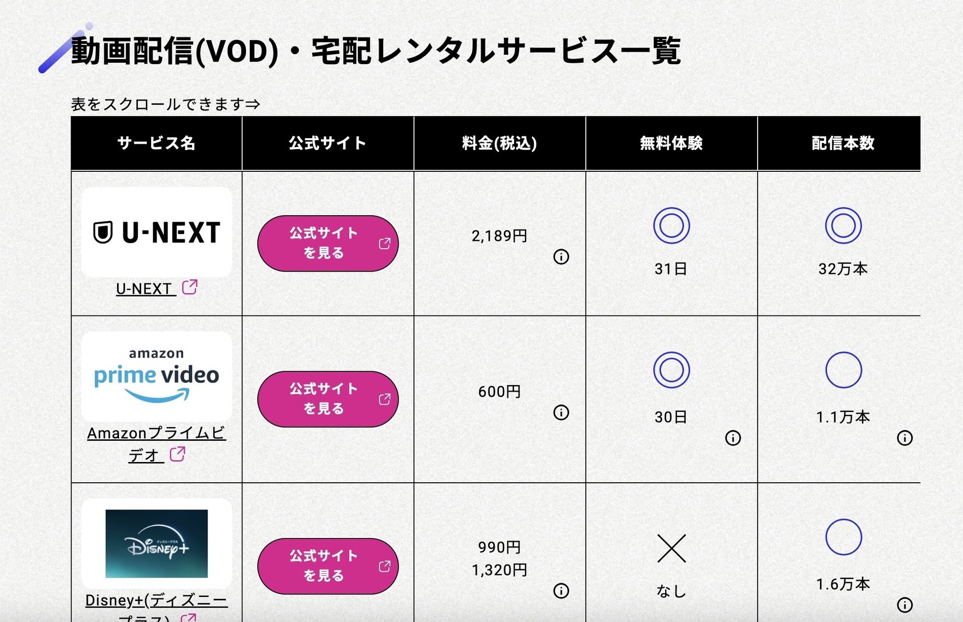 ▼おすすめ動画配信サービス一覧比較