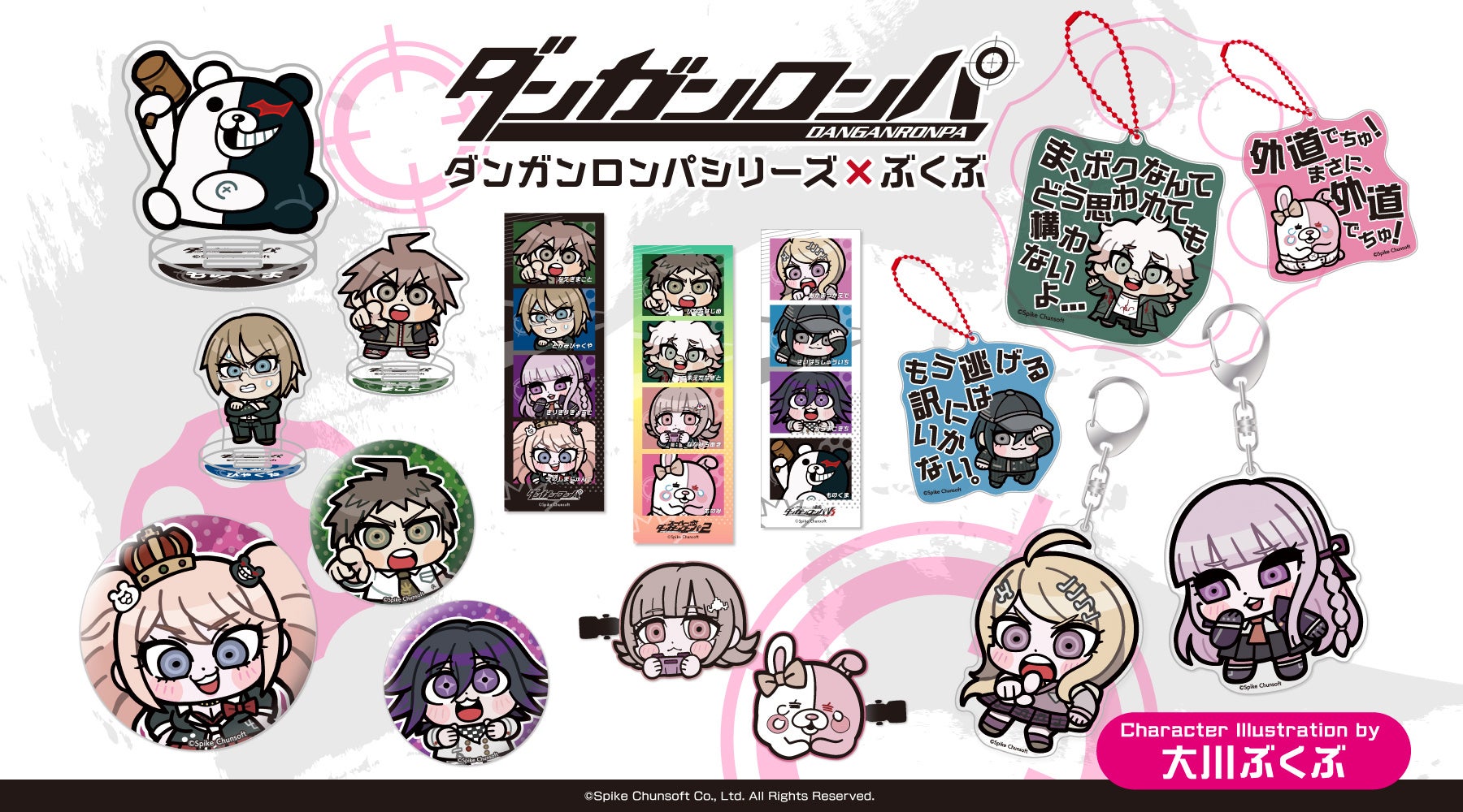 好評発売中のハイスピード推理アクションゲーム「ダンガンロンパ」シリーズより漫画家大川ぶくぶ氏描き起こしイラストのグッズを発売します。