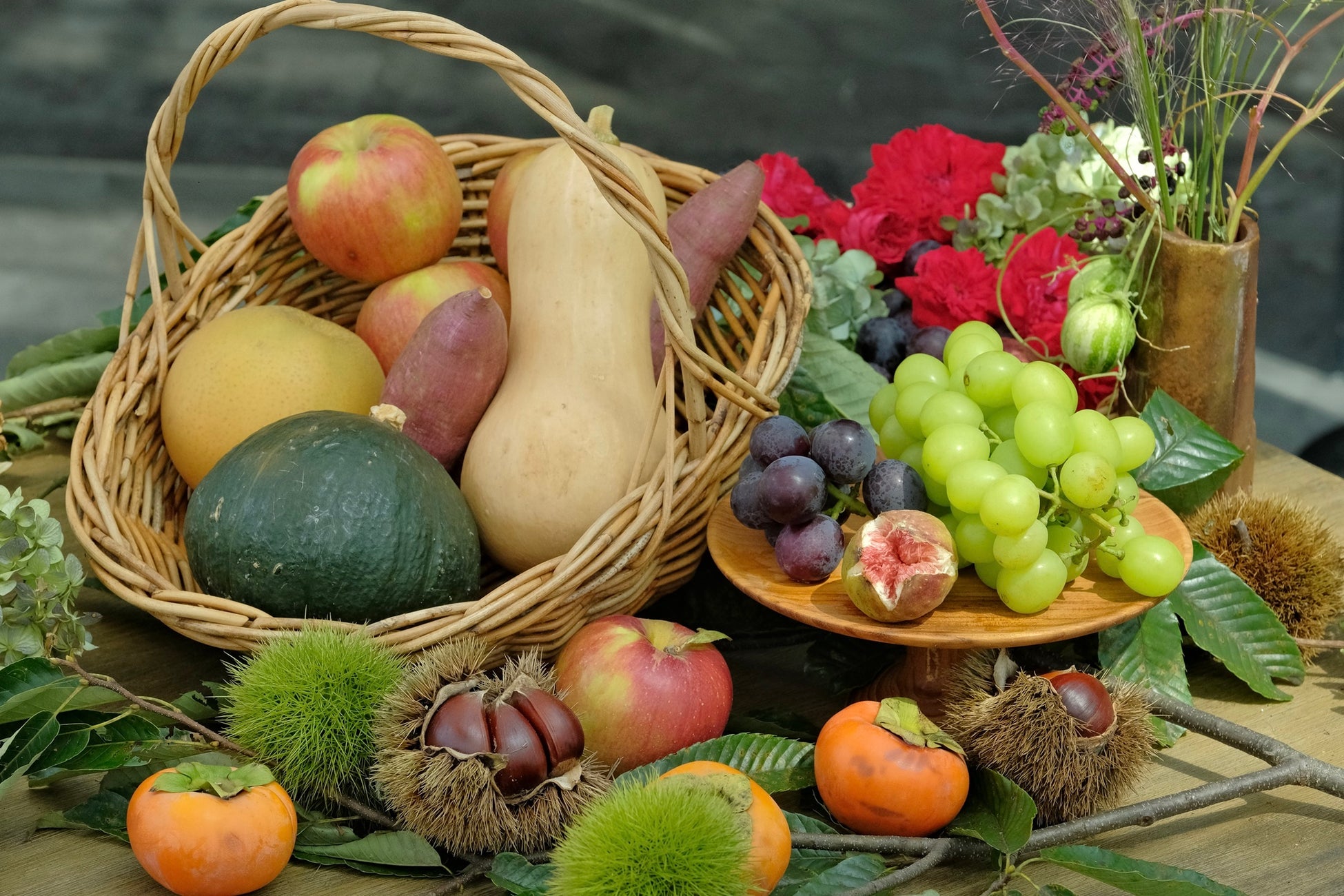 実りの秋、黄金色に輝く稲穂が収穫期を迎えるフラワーパーク近隣では、お米をはじめ、さまざまな果物と野菜が旬を迎えます。