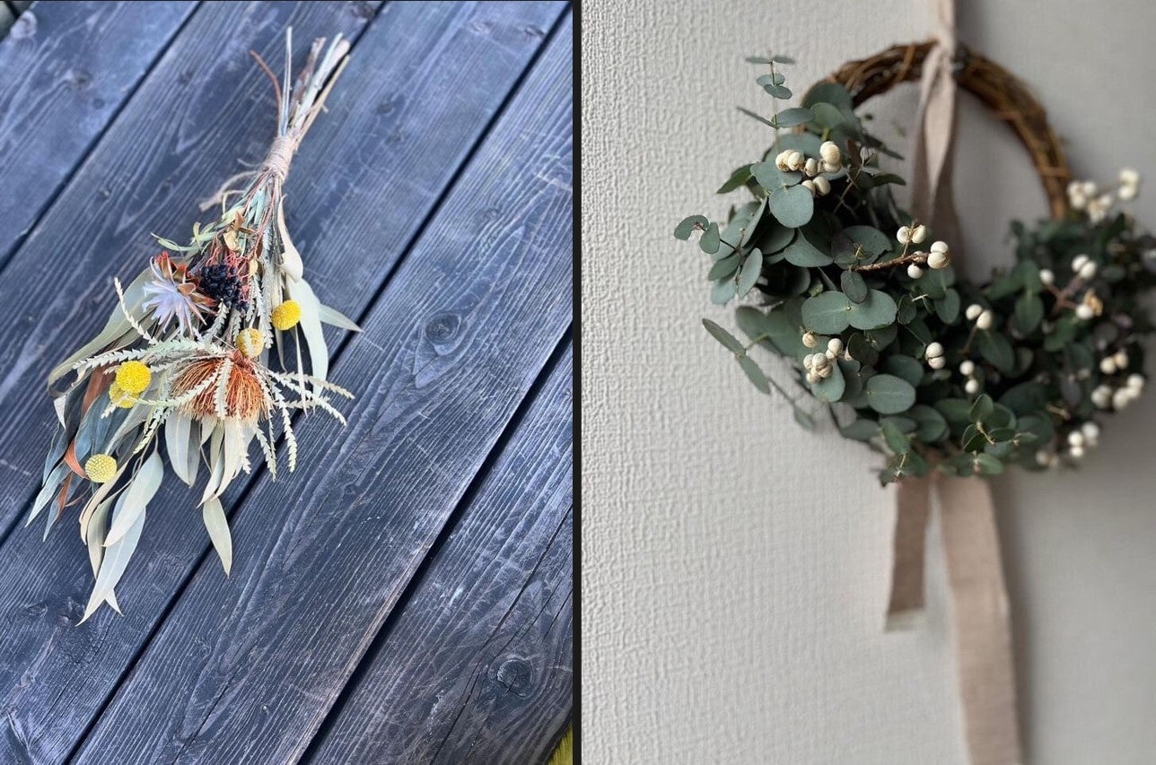 手軽にカジュアルに。 経年劣化というアレンジが加わるとそれだけでナチュラルな生活に。 どんな風に飾ろうか。どんな所に飾ろうか。 色々なお話をしながらドライフラワーのある生活のお手伝いをさせて下さい。