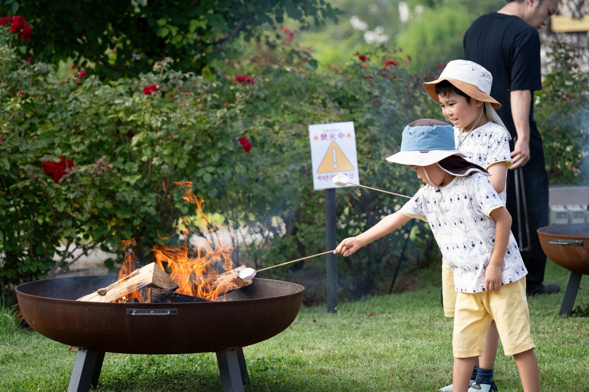 マシュマロや弓豚、干し芋を焚き火で炙って