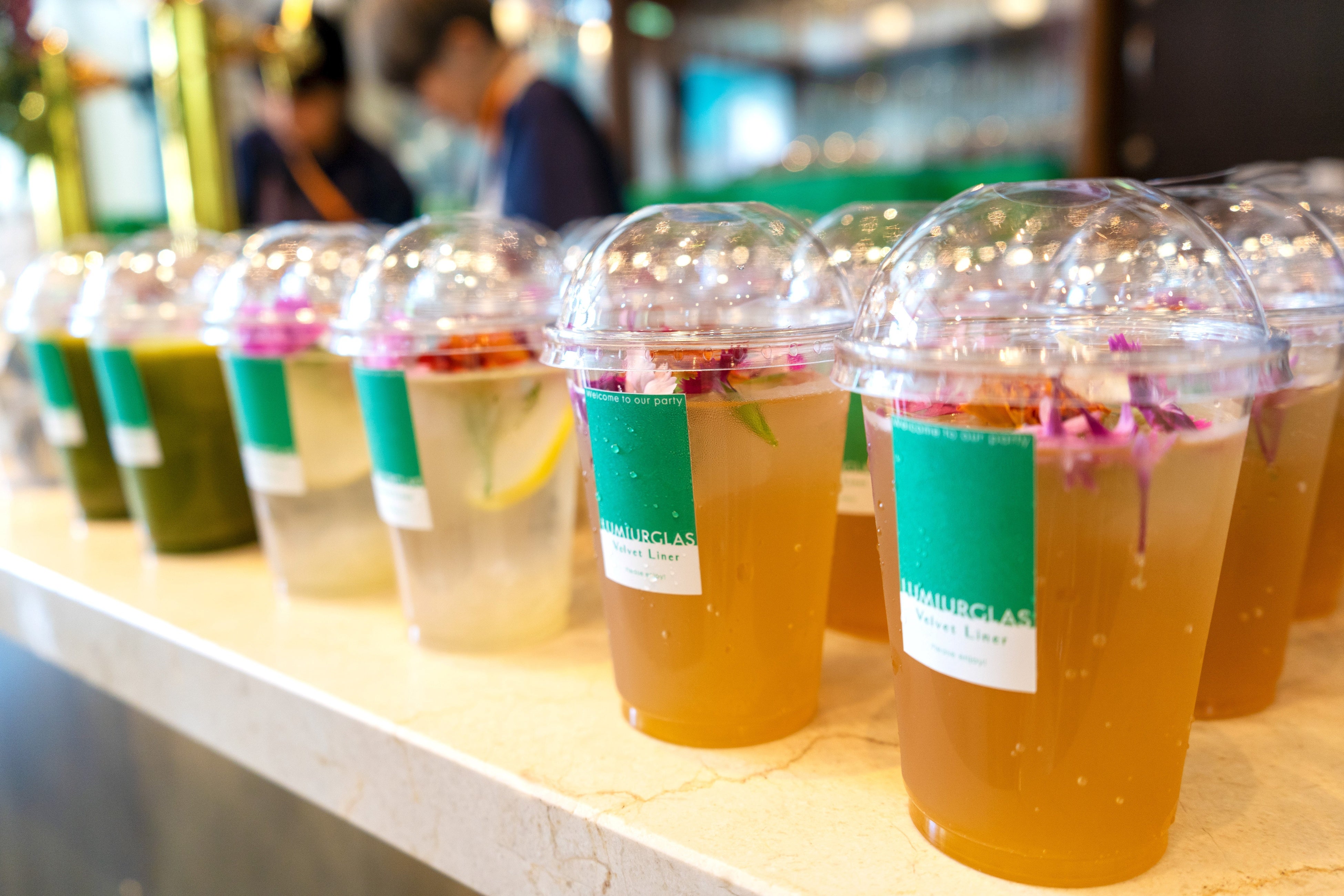 当日の会場内は、ルミアグラス ベルベットライナーの世界観を演出した空間で彩り、イベント限定モクテルやギフトセットなどをご提供させていただきました。