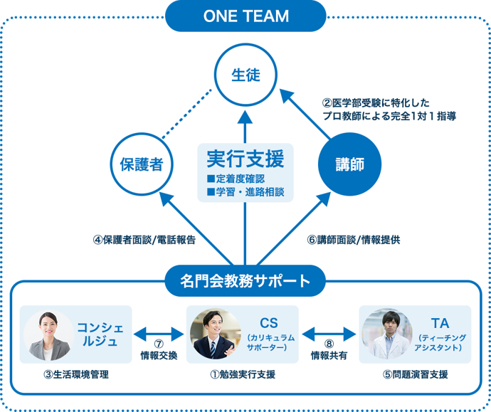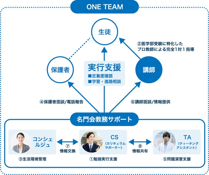 「目標に向けて真剣に努力しているときに、全⼒で応援してもらえるという経験が、生徒の人格醸成につながる。『MEDIC名門会』の手厚いサポートが、生徒の思いやり、ひいては医師にふさわしい人間性を育む」(吉田社長)
