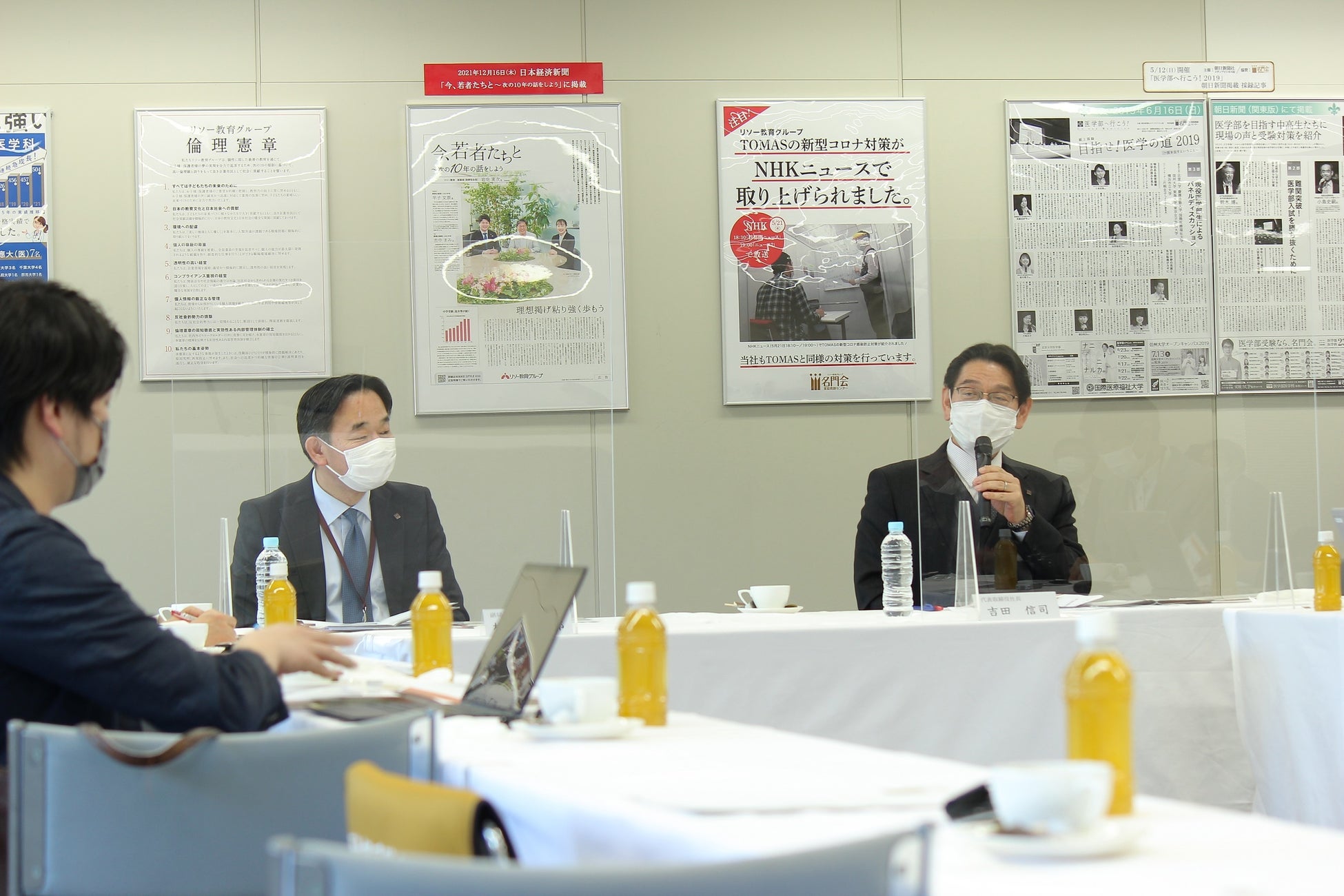 2022年3月、株式会社名門会は、医学部合格を目指す新ブランド「MEDIC名門会」を設立します。これにあたって2021年12月23日(木)、ラウンドテーブル形式の記者会見を開催。代表の吉田信司社長が、メディアに向け、名門会が大切にしている理念や、「MEDIC名門会」にかける思いを語りました。