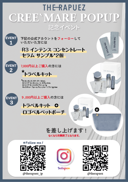 大人女子のハイブランドコスメ「THE RAPUEZ(ザ·ラピューズ)」が2023年3月17日~4月8日、CREE`MARE(クリマレ) ルミネエスト新宿店でオフライン販売を開催いたします。
