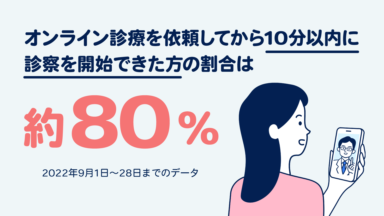 また、診察のご依頼後、素早く受診できるというメリットもあり、9月には約80%の利用者の方がご依頼から10分以内に診察を開始されております。