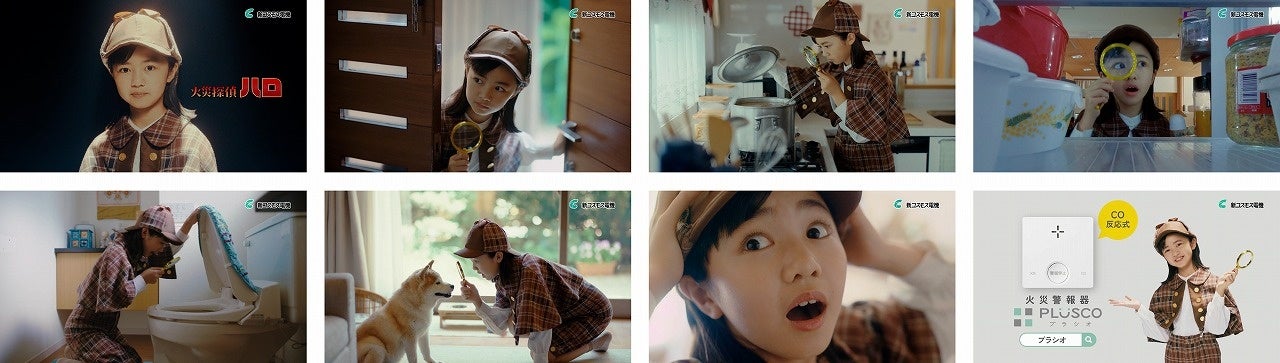 「火災探偵ハロ」は、ある家に調査に入ります。その家は火災があったそうですが、家中を隈なく調べても、痕跡が何もない…。しかも住人は早く気付いて、早く逃げられたというが…?何も見つからず、困惑する「火災探偵ハロ」。何かに気付き見上げた目線の先には、「プラシオ」が!出演いただいたのは、NHK連続テレビ⼩説『舞いあがれ!』(22年)で主⼈公の幼少期を好演した浅⽥芭路さん。浅田さんには、家中を必死に調査し、困惑し、驚く可愛らしい探偵をコミカルに演じていただきました。