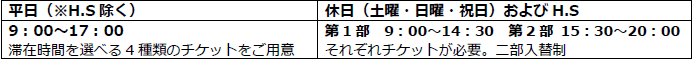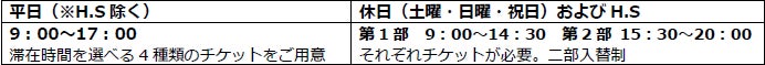 ※平日でも二部入替制の設定となる日付を設ける場合があります。