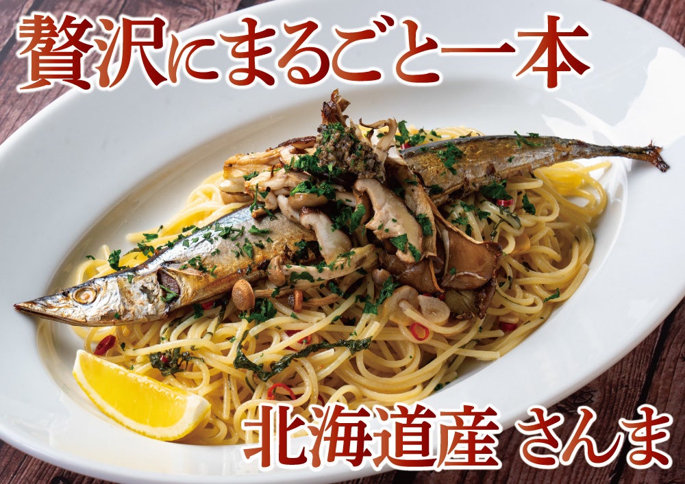 ■北海道産秋刀魚をまるごと1本がのった豪快スパゲティを9月13日(火)~11月中旬まで販売スタート!