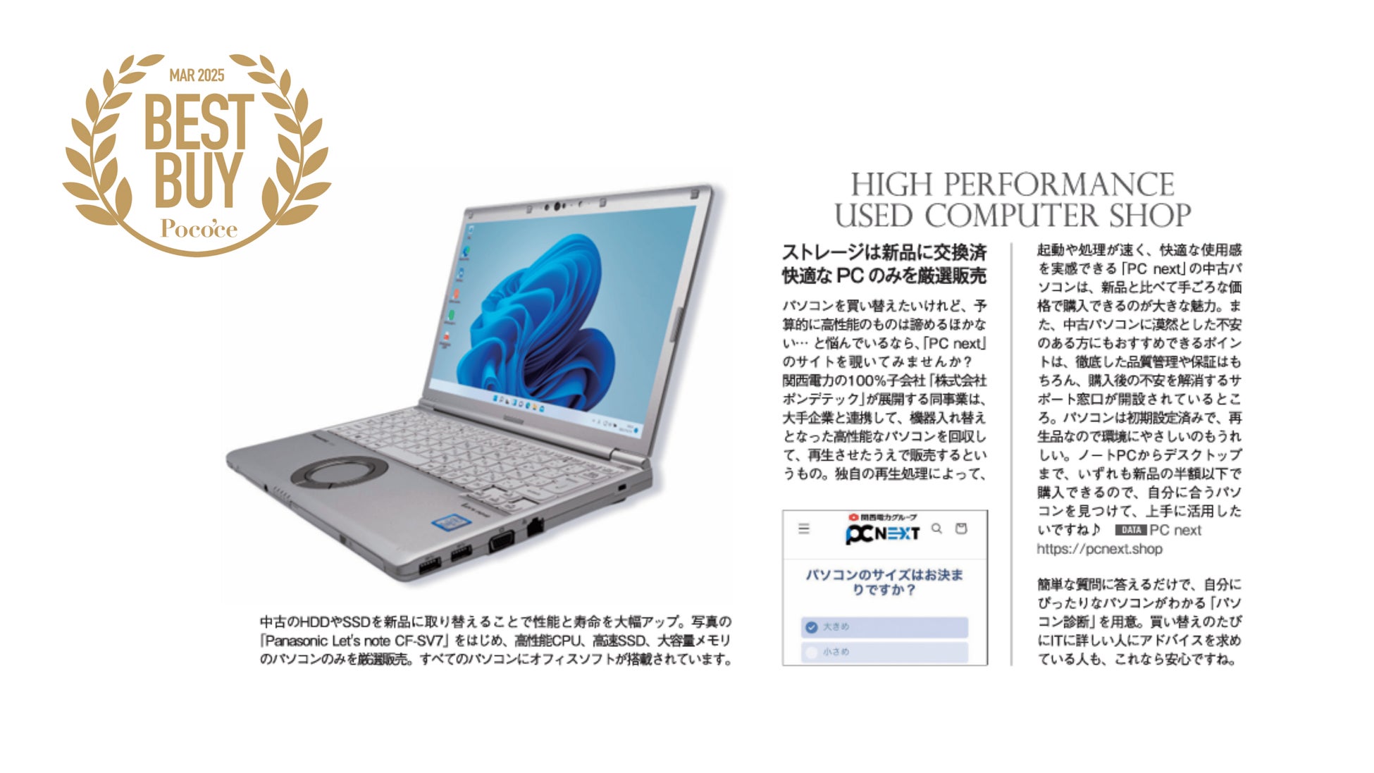 関西電力の100%子会社・株式会社ポンデテックが手がける“再生パソコン”サービス「PC next」がベストバイに選ばれました。