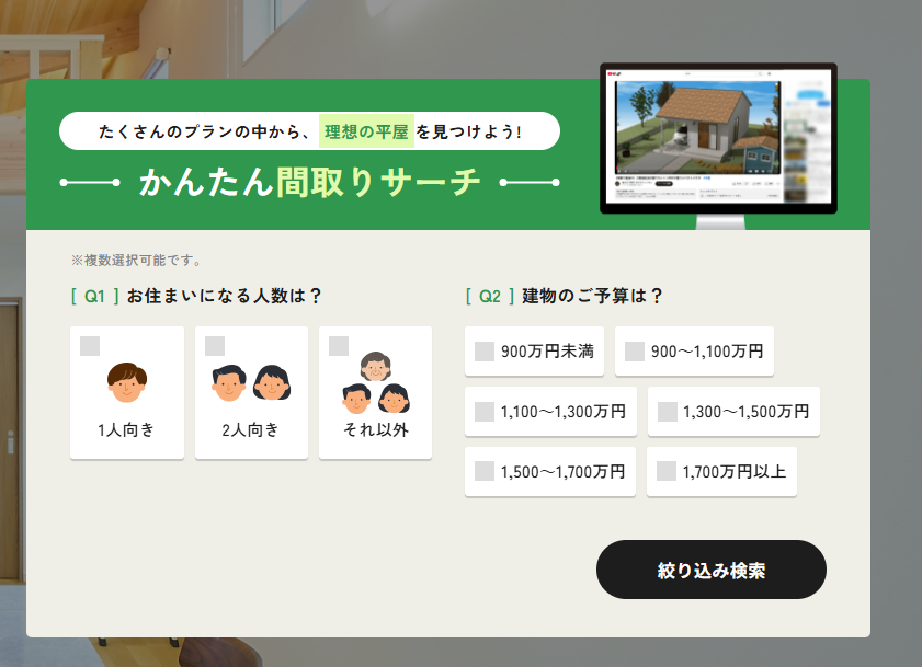 間取り動画や3Dによる空間把握も可能で、事前にオンライン上で比較・検討が進められます。これにより、ユーザーは自宅にいながら「ひとり暮らし向け」「ふたり暮らし向け」など、自分に必要なサイズと暮らし方に合う平屋住宅を効率的に見つけられます。