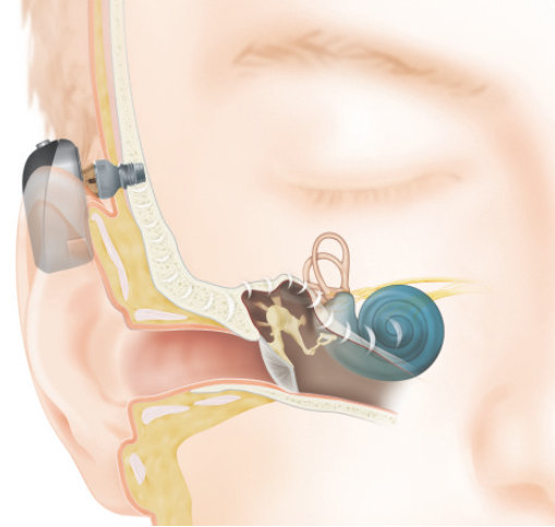 3. 振動はインプラントに伝わり、頭蓋骨を通して内耳を刺激します。