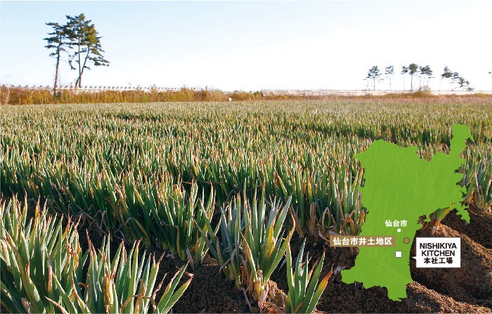 震災後の土地は、前と同じように野菜を育てるには難しく、農家の皆さんは試行錯誤を繰り返しました。色々な野菜を試してみた結果、良質な地下水、豊富な日射量、夏の冷涼な海風がねぎの栽培に合っており、甘くてとろっと柔らかい「甘とろ」な井土ねぎが出来上がりました。