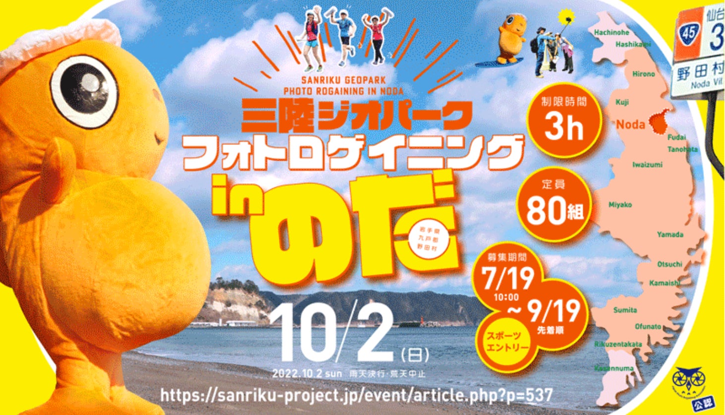 10月2日(日)、岩手県野田村で、フォトロゲイニング大会を開催します!
