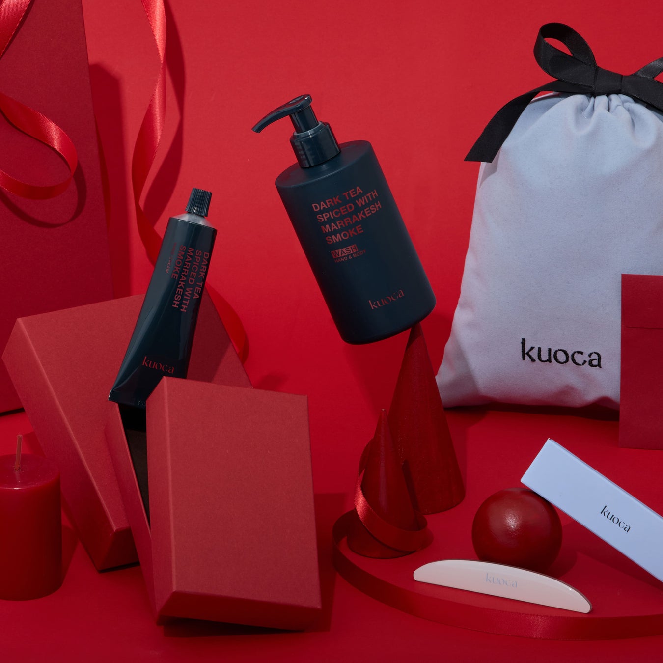ブランド初となる限定キットは、kuocaの人気シリーズ「EPICURE BLENDS(エピキュアブレンド)」のハンド&ボディウォッシュとハンドクリームに加え、kuocaロゴ入りネイルファイルとオリジナルポーチがセットになった、クリスマスギフトにもぴったりなラインナップです。また香りが選べるハンド&ボディウォッシュの中には、&ROSY 2024 上半期ベストコスメ 編集部を受賞したBASIL SORBET(バジルソルベ)の香りも展開。ホリデーシーズンに自分へのご褒美や、パートナー、友達、家族など大切な人に贈るギフトとしても最適です。この時期にしか手に入らないスペシャルなセットをぜひお見逃しなく。