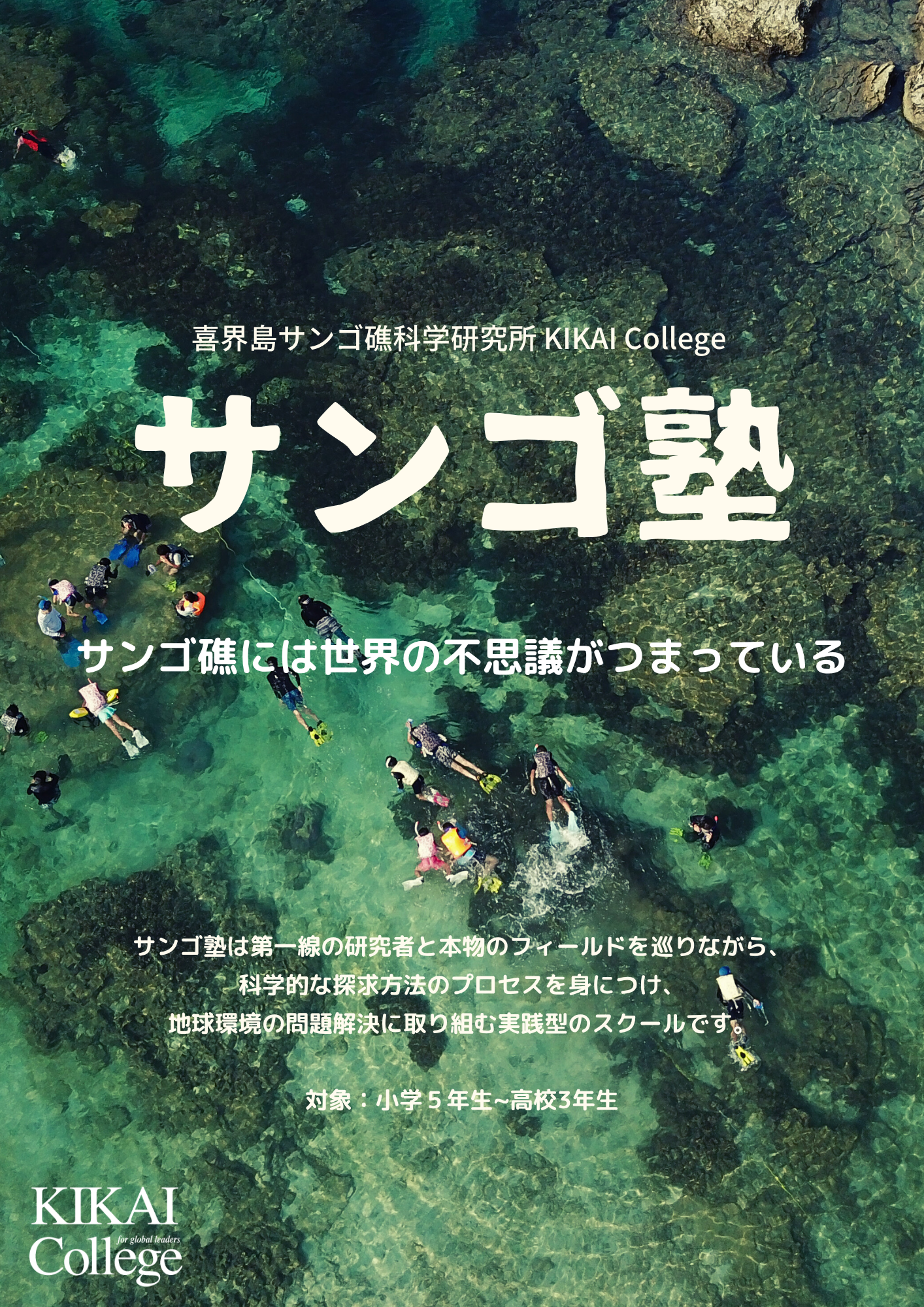 サンゴ塾は喜界島サンゴ礁科学研究所に付属する教育プログラムKIKAI Collegeの中で、小学生〜高校生を対象としたプログラムです。