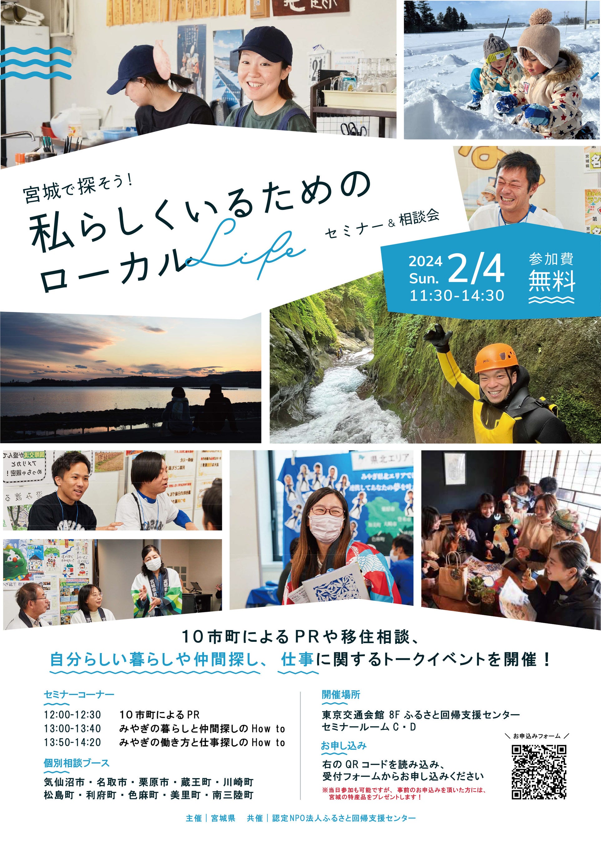 2月4日(日)東京交通会館で「宮城で探そう!私らしくいるためのローカルライフ~セミナー&相談会~」開催