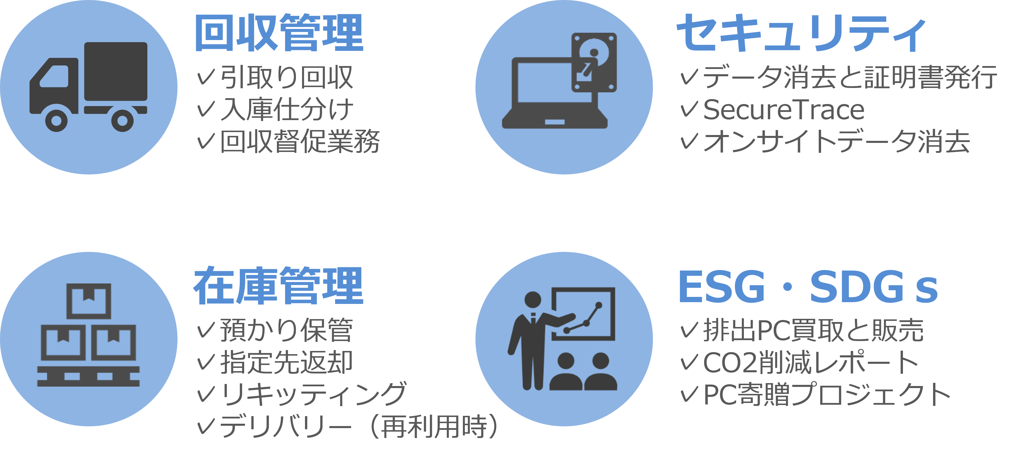 ・IT機器の排出時における回収の督促から適正処分までの面倒な業務を全て受託(一部でも可能)