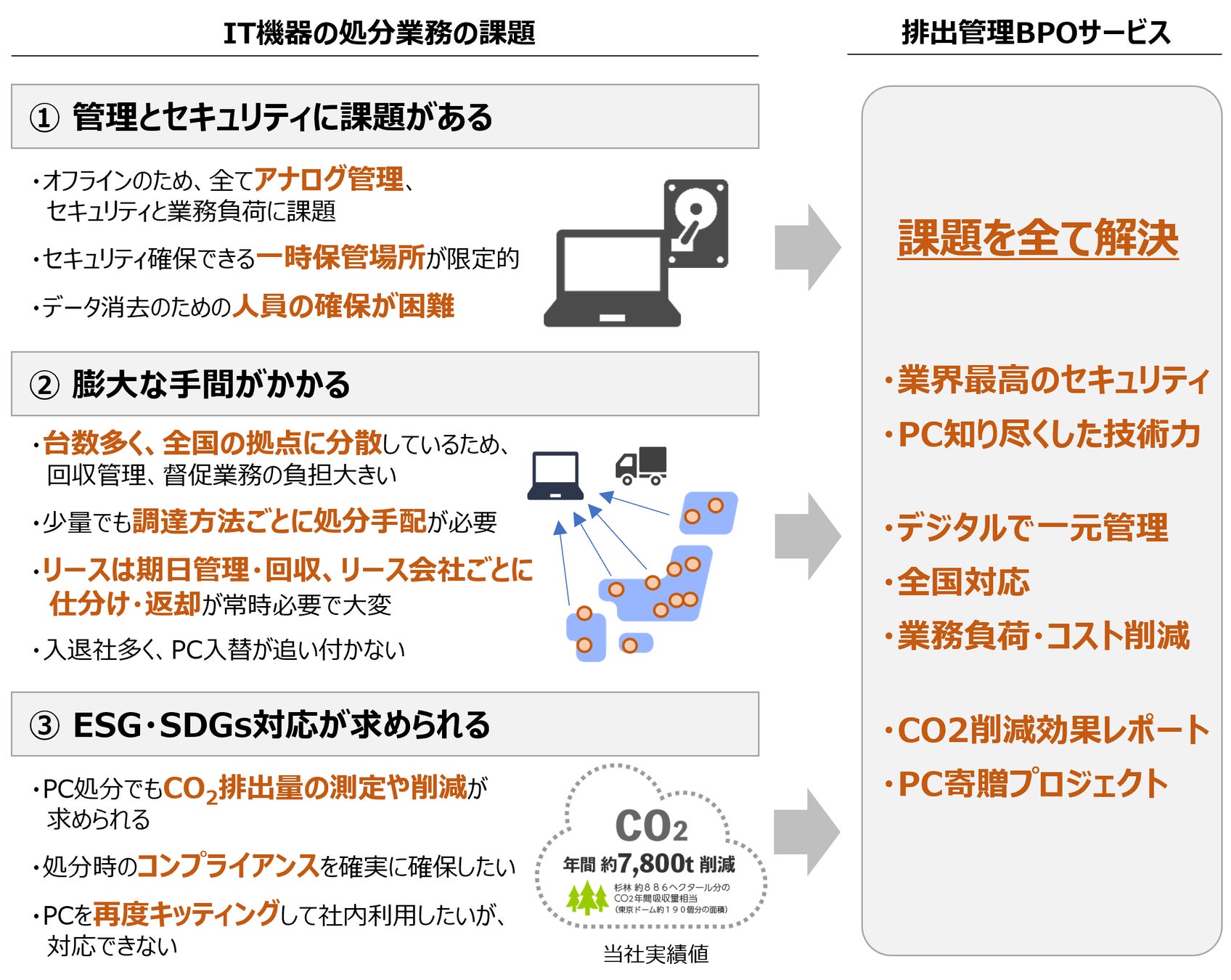 使用済みIT機器処分に関する課題を全て解決する「排出管理BPOサービス」(以下 本サービス)の提供を開始いたします。