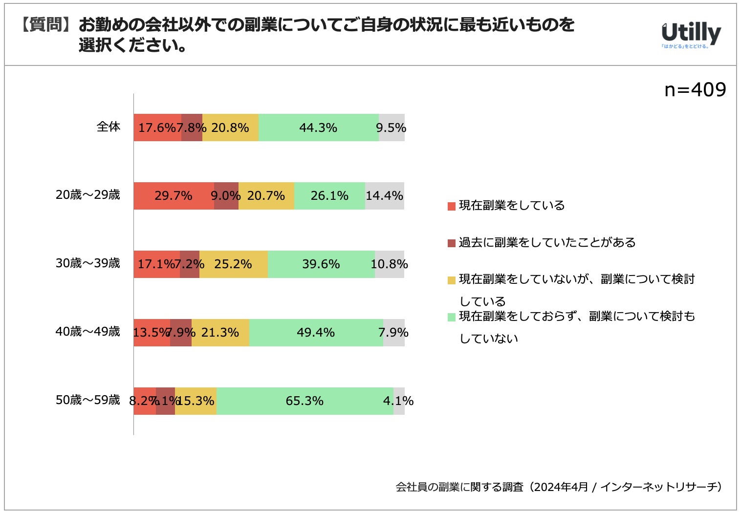 法人SaaSの比較メディアUtilly(運営会社:株式会社GO TO MARKET、所在地:東京都渋谷区)では、2024年4月に会社員の副業に関するアンケート調査を実施しました。