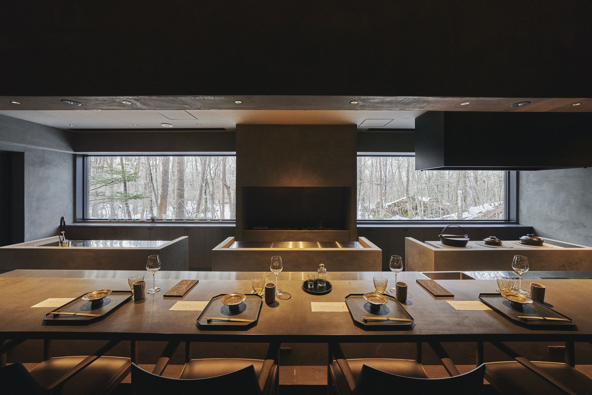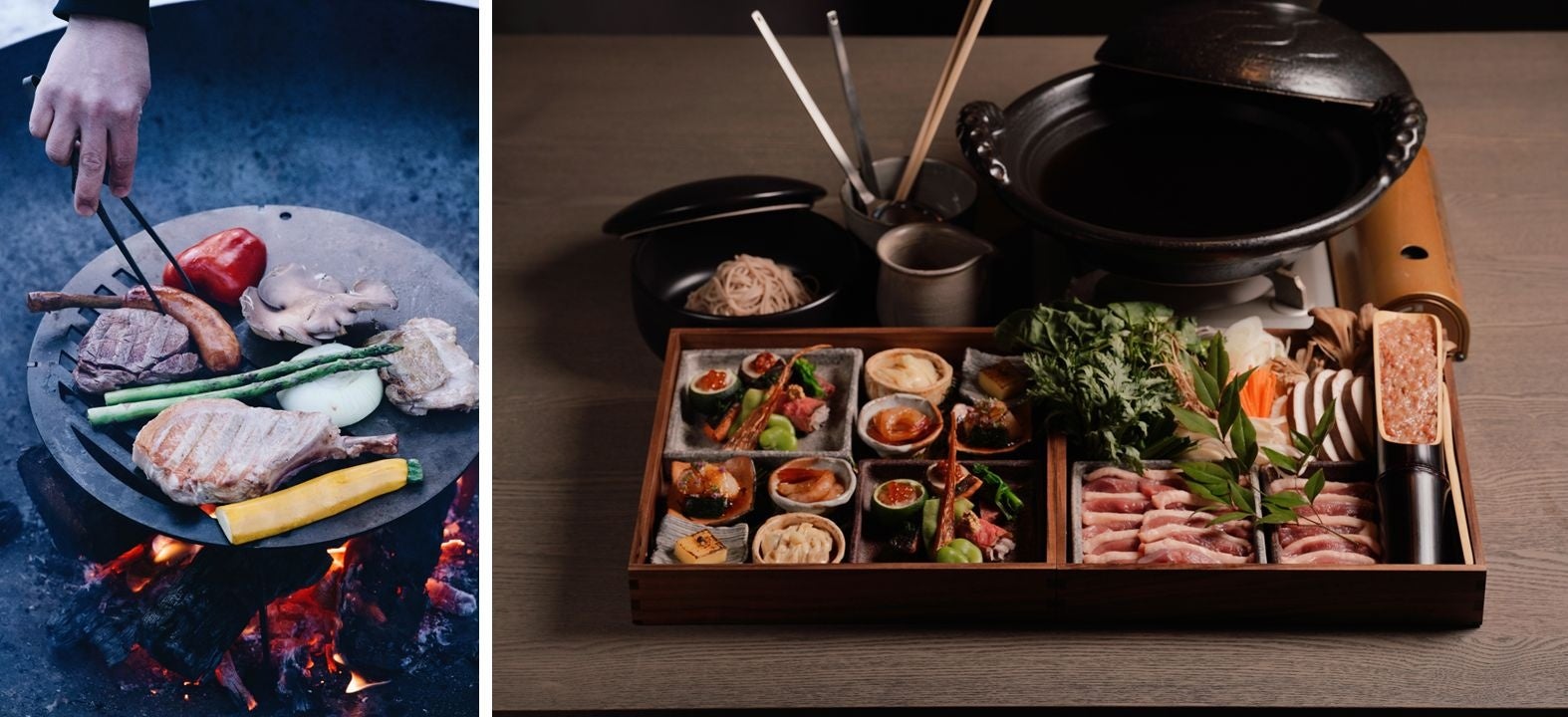 敷地内には宿泊者のみが利用できる、北軽井沢の風景を眺めながら食事を愉しめるエクスクルーシブなレストランが誕生。シェフが北軽井沢ならではの味覚を活かした囲炉裏料理を提供するプライベートな空間です。カウンターで炭火で調理される川魚、牛肉、ジビエなどをお楽しみください。また、お部屋ではBBQや鶏白湯鍋、鴨鍋もお楽しみいただけます。