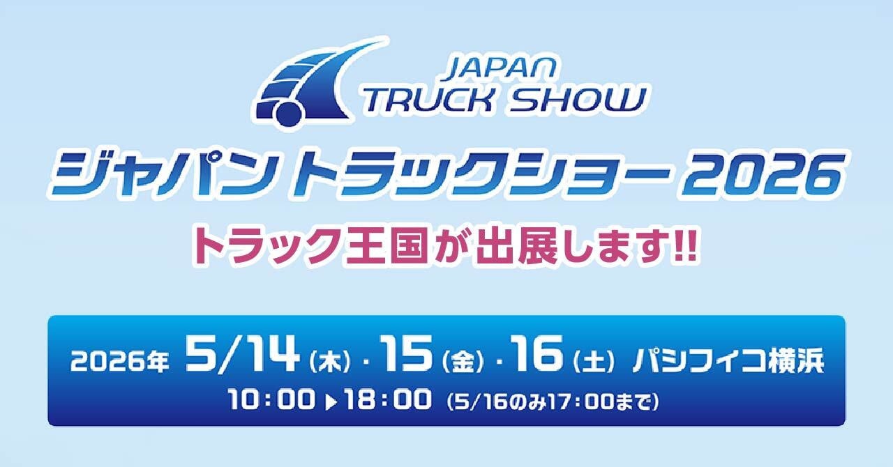 商用車専門のオンライン売買プラットフォーム「トラック王国」を提供する株式会社トラックオーコク(本社:東京都渋谷区、代表:津島 一夫)は、2026年5月14日(木)〜16日(土)にパシフィコ横浜にて開催される「ジャパントラックショー2026」へ出展することが決定いたしましたので、お知らせします。あわせて、会期中に新サービスの発表を予定しています。